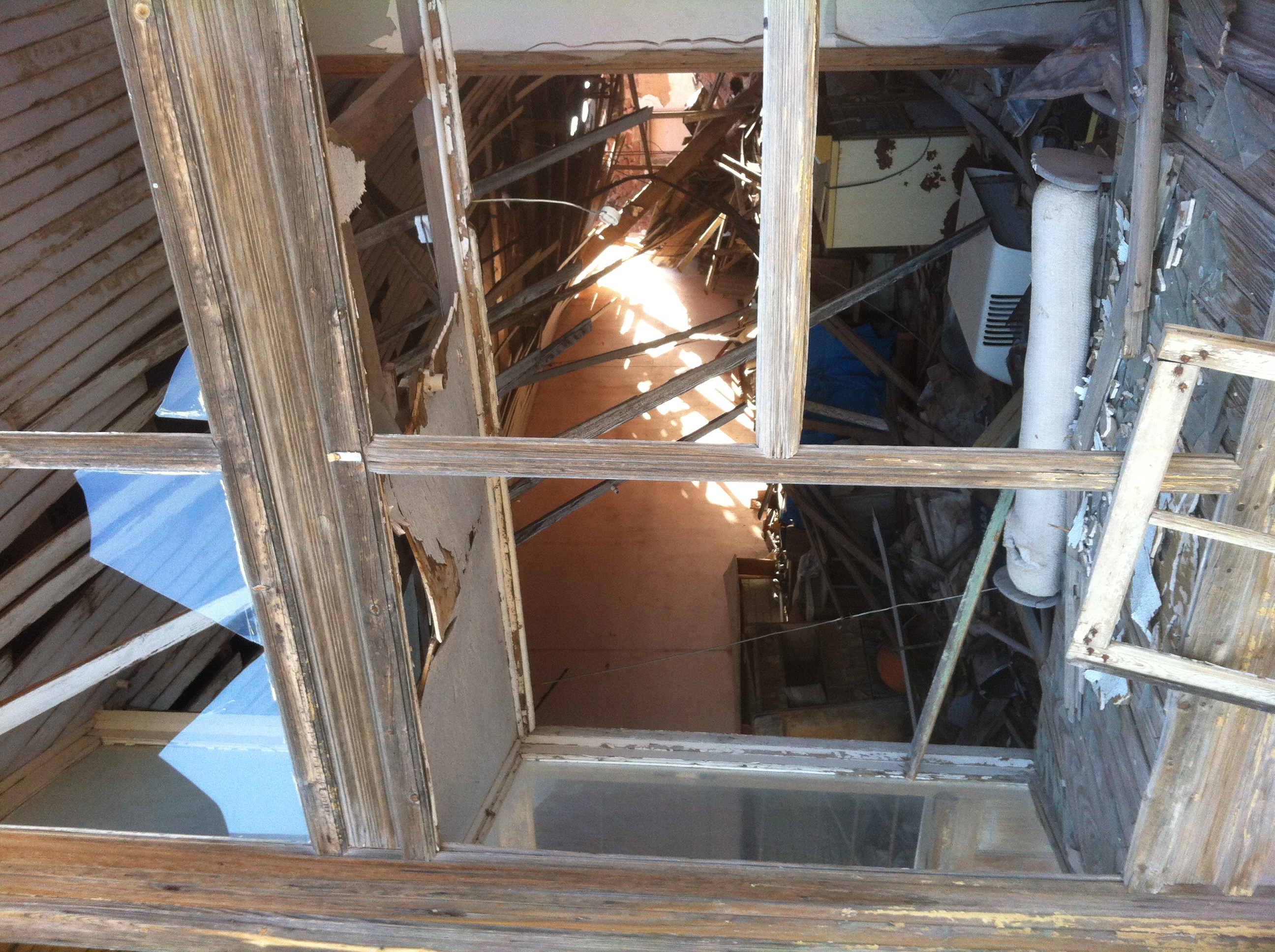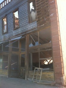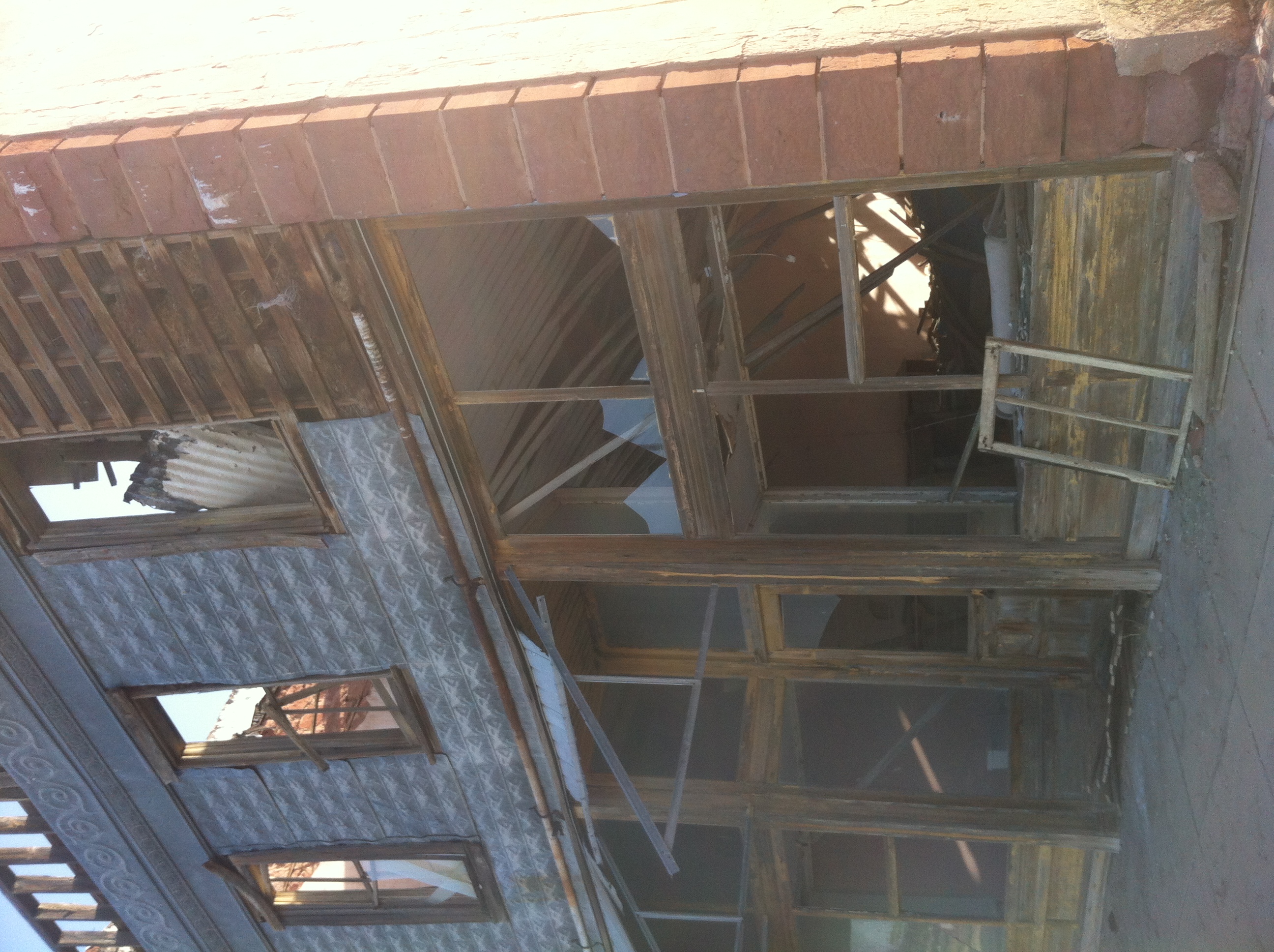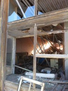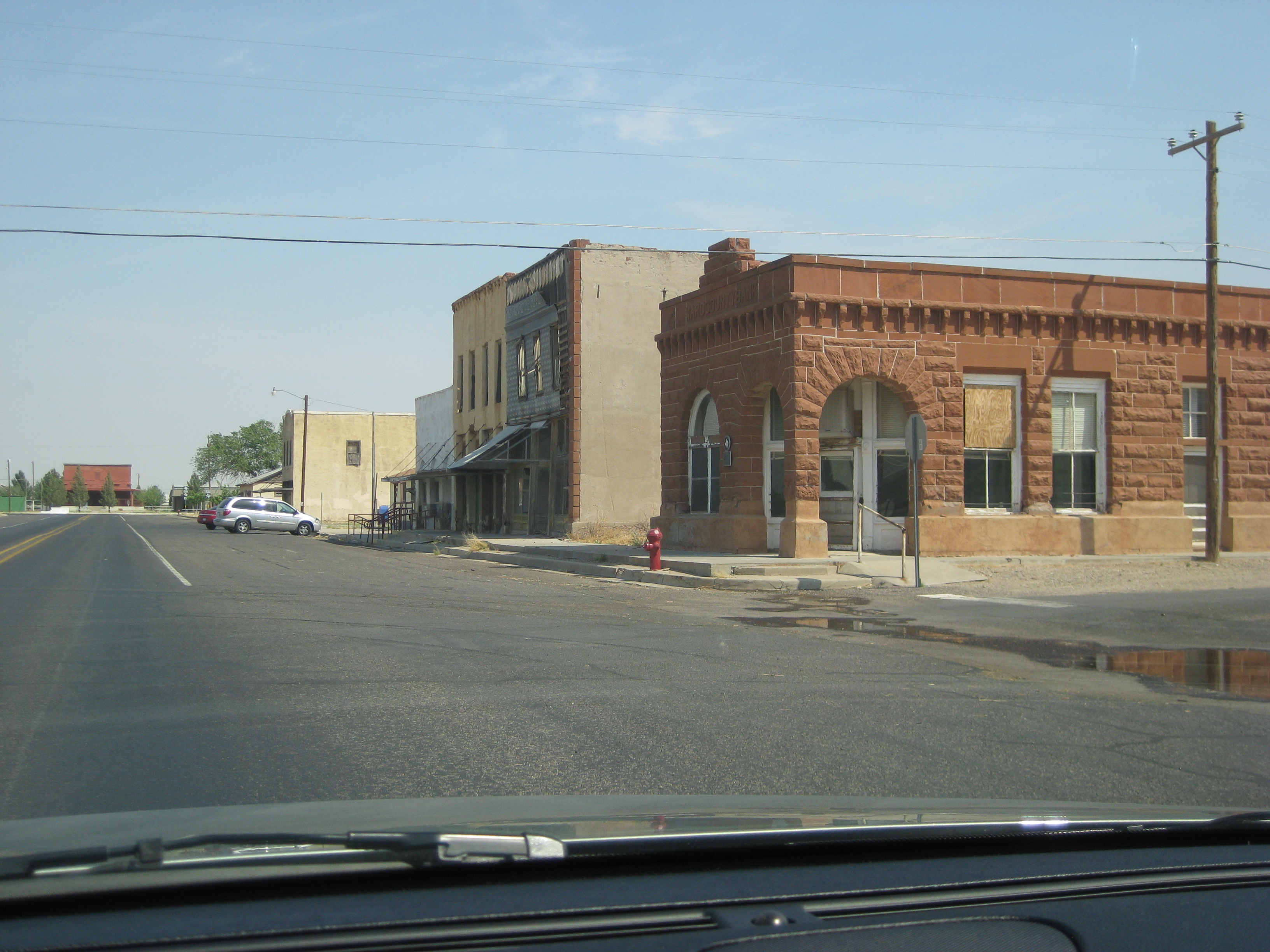 After the dam failed in the first part of the 20th century, the town declined and never returned. The first bank built in Ward County is still standing. The sturdy red stone, quarried locally, gives a structure and permanence to the building that the wooden trim, blistered by the unending desert sun, can’t compete with. Peering through the windows, you can see a stone and wood mantel against the wall, one that an antique dealer would probably die for, and the remnants of the bank teller’s stand near the back. The rest of the room is piled with boxes and dust. Across the street, you can see the somewhat sadder remains of the Citizens Bank.