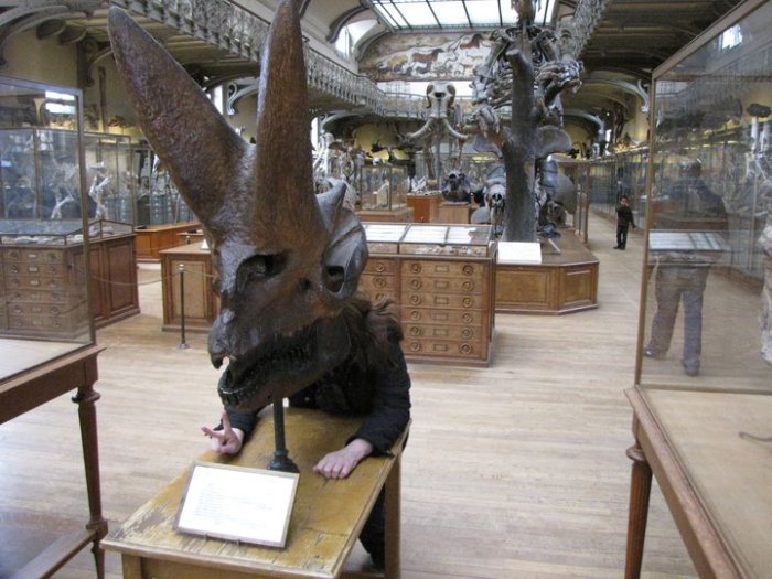 Certainly I don’t know any modern museum that would dare to display a skull in such an unscientifically incorrect way. Still, without even a drawing of what an Arsinoitherium looks like, the visitor is left with homework to solve the mystery. While a modern museum may have animated dinosaurs and interactive displays, the Natural History Museum in Paris gives the delights of a devilish mystery. I read with dismay a “review” of this museum online. Tourists complain that the museum needs to be “updated”. But the museum is a perfect mix of history and education. I hope it will remain as it is, hand lettered signs, two faced kittens and freaks, bones galore, and the devil to cause a shiver of fear in every visitor.