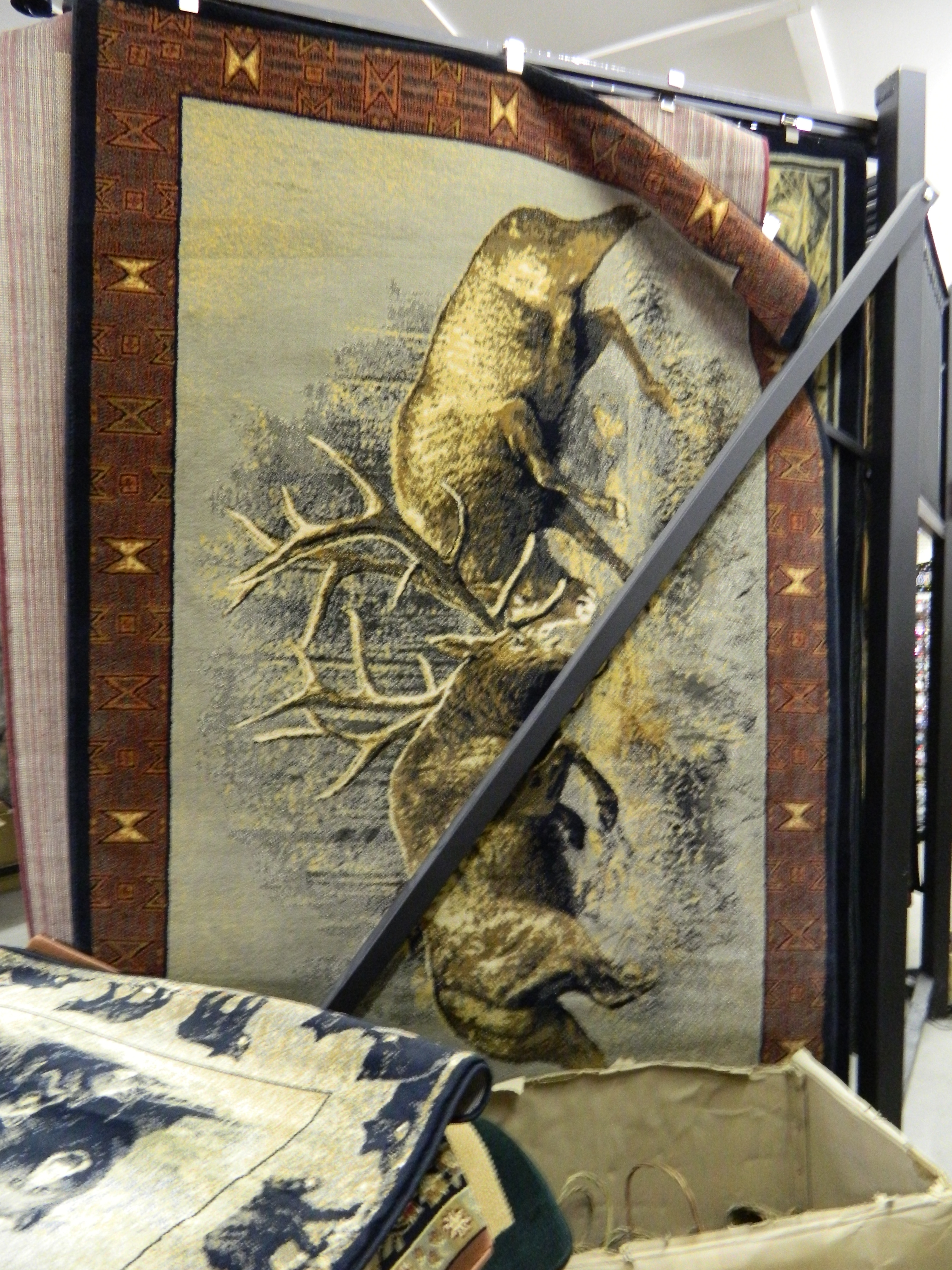 I really enjoy Village Discount, and if they ever build a boring Wal Mart I think I’ll cry. Wal Mart may have more colors in shower curtain rings, but they don’t carry a rug with Bucks in Heat.