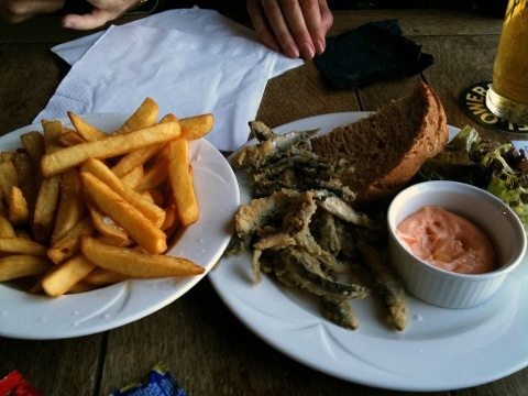 I went to London with friends a few years ago, primarily to attend the first non-US TAM (The Amazing Meeting) with friends. One afternoon we took a boat trip down to Greenwich and had lunch at the Trafalgar Tavern, a place that opened in 1837 and served the society of London for many years, including one of my favorite authors, Charles Dickens. This being a pub, we decided to have a pint and a snack of fish and chips. We ended up ordering a local favorites, whitebait.