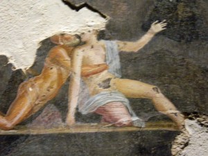 A recent travelling exhibit about Pompeii did not try to avoid the vast amount of pornography that was uncovered at the site. While the casts of people and the well known dog were featured, the exhibit going public could view what the average Pompeii citizen barely batted an eyelash at. The average Republican candidate would probably react to the porn of Pompeii much as the royal ladies were anticapted to, with an attack of the “vapors”.