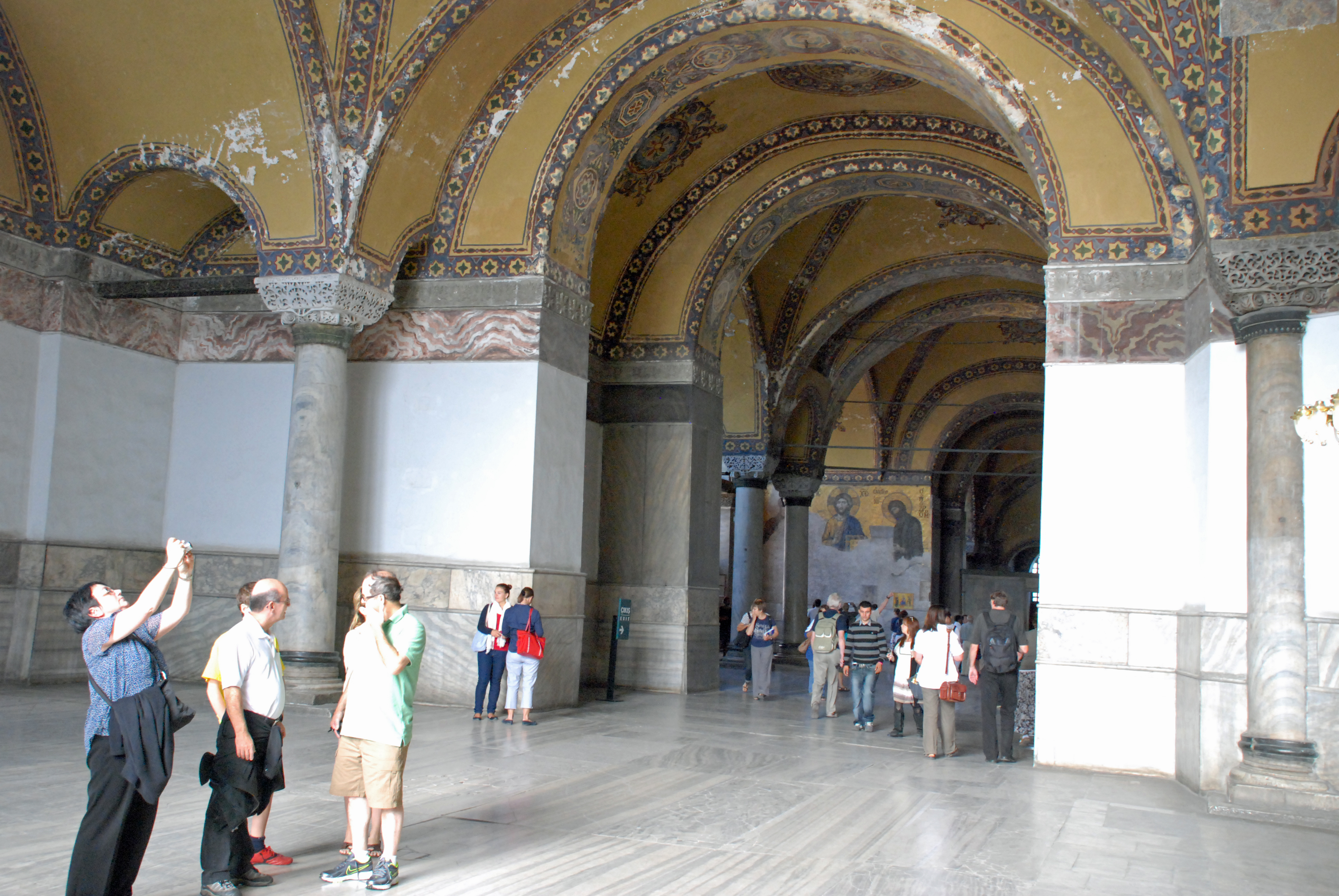 On the upper level on the Hagia Sophia. Note the partially restored mosaic in the back, while the rest of the walls remained covered with plaster, put there by Muslims. Imagine how 7th century peasants viewed this huge palace.