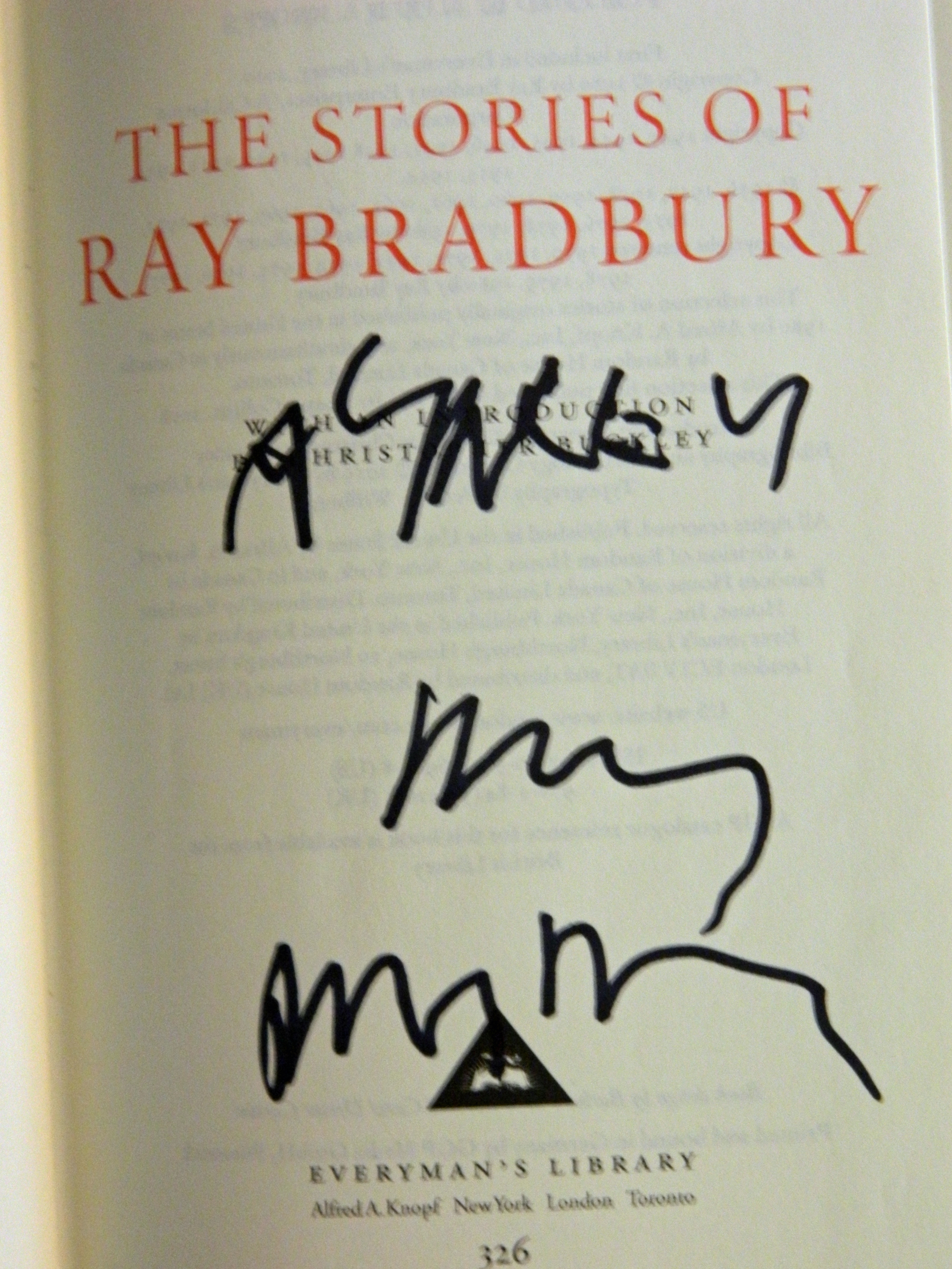 Great post, and how wonderful that Ray Bradbury allowed himself to be persuaded to sign that book! An awesome and soul-full writer who I still can’t believe isn’t here any more. RIP Ray, and good wishes to Aynsley!
