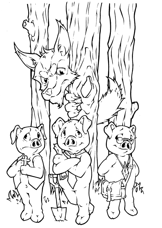 Still, with so many pigs, the village became very crowded. One day three pigs decided they would build homes outside the village near the edge of the woods. The other pigs in the village warned the three pigs. “No one lives near the woods as there is a wolf that lives there. He likes to huff and puff and blow down houses!”. The pigs decided to build houses near the woods anyway. Each pig thought “Oh but the wolf will not huff and puff and blow down my house! I have a plan!”