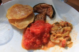 When we arrived at Bulbul Mountain Looms Trade School, the owners immediately took us into an enclosed courtyard, sat us at a long table, and proceeded to stuff us silly with wonderful Turkish dishes. The chefs brought us several kinds of grilled lamb and chicken, grilled vegetables, pita breads, and fruit. All of these was only €7 each! I could not eat everything they brought, so they apparently viewed me as somewhat of a light-weight. Elsewhere in the courtyard, the men had a large grill set up, where they prepared the food as we ate.
