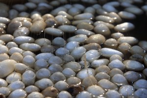 All of the yarns are dyed with natural materials. We watched how they made the dye solutions, and dyed yarn for the rugs. The young women are also taught to spin raw silk fiber directly from cocoons.