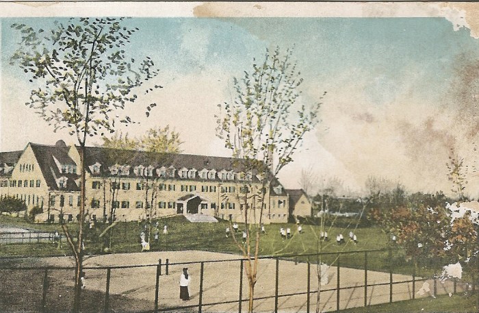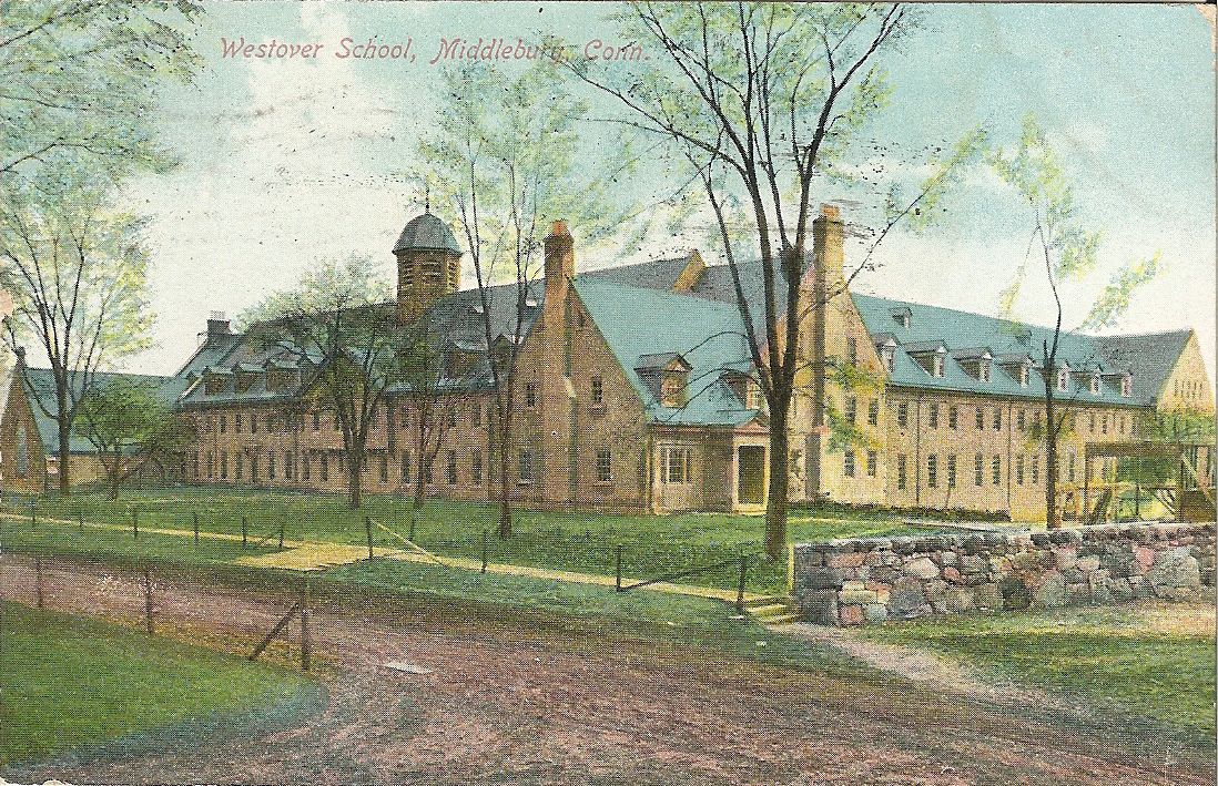 While she attended Westover I collected old postcards of the school. The architecture, by a innovative woman architect Theodate Pope, is quite beautiful. The rooms for the students were designed with huge closets, Theodate obviously knew even girls need big closets. She also designed the all male school, Old Avon Farms, and the rumor was she gave the boys very small closets.
