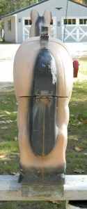 However, I now have a new theory. My husband and I were driving on one of the backroads of Hillsborough when we saw a horse ass mailbox. I am a fan of peculiar mail boxes, so he knew enough to stop for me to take a photograph without arguing.