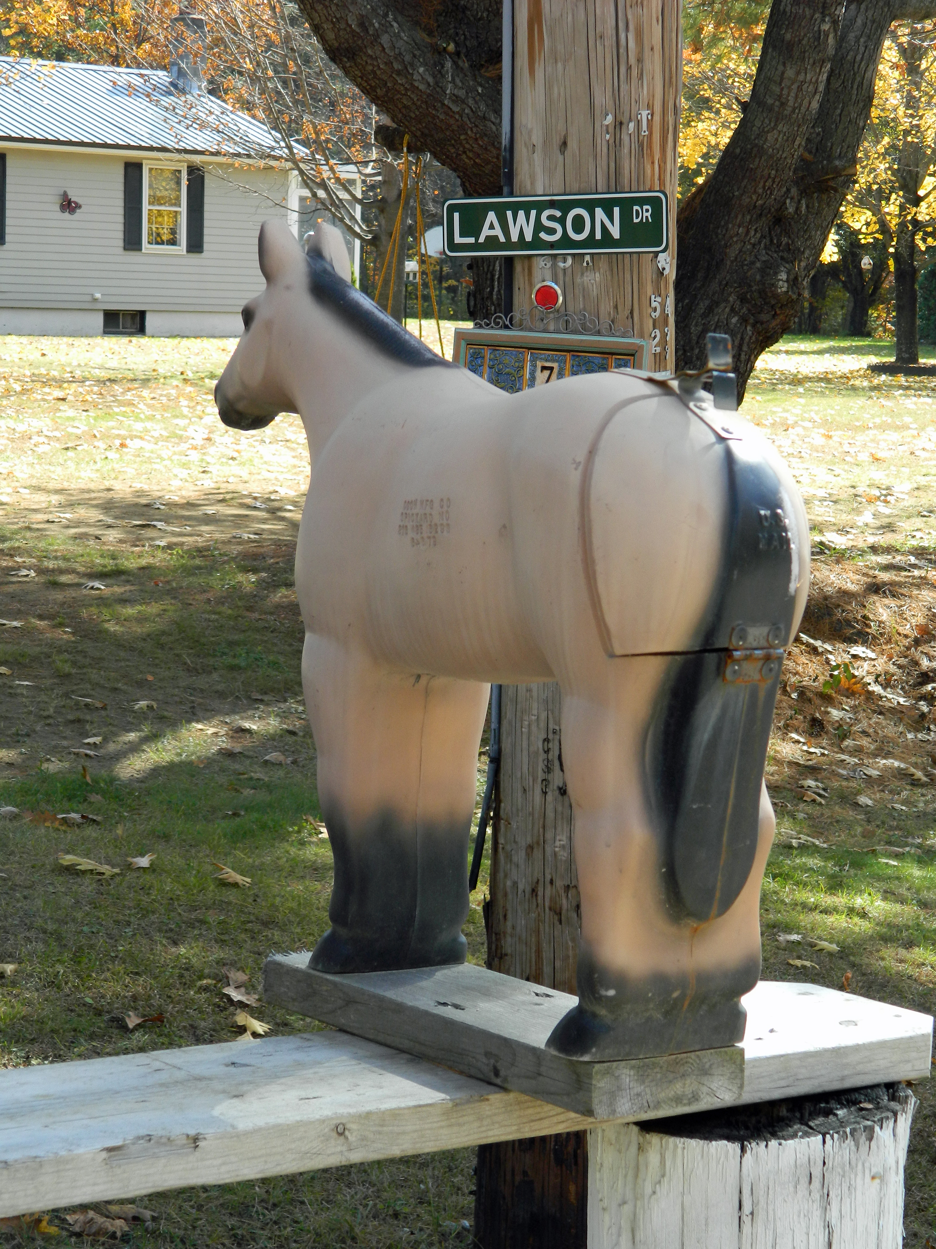 I wondered, who would have a horse ass mailbox, and how can I meet them…when I noticed the name of the owners of the horse ass mailbox. Lawson. LAWSON!
