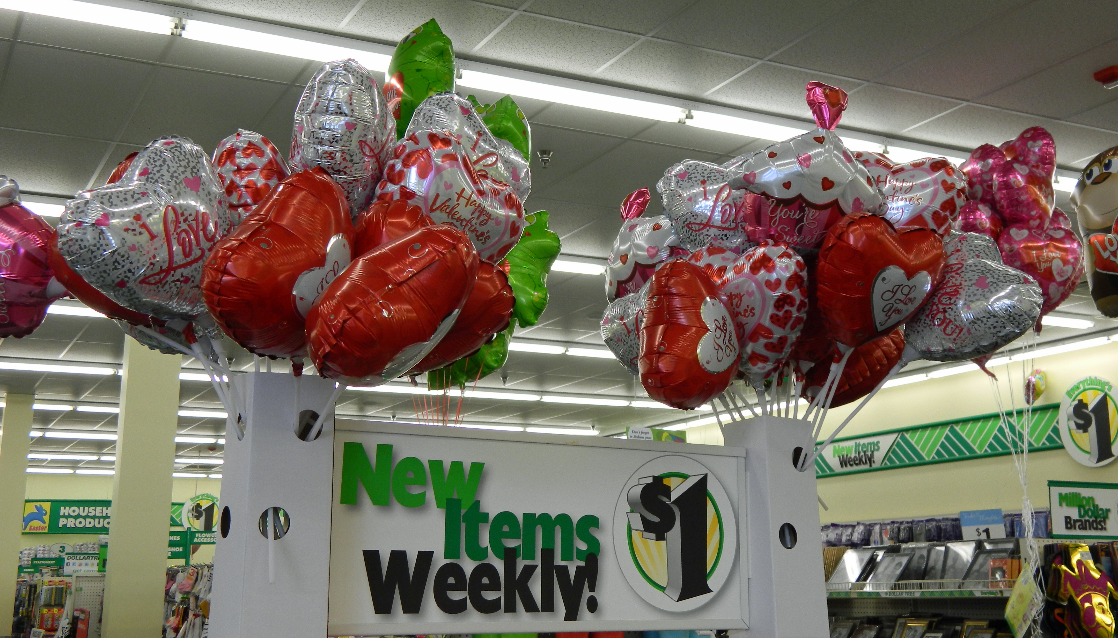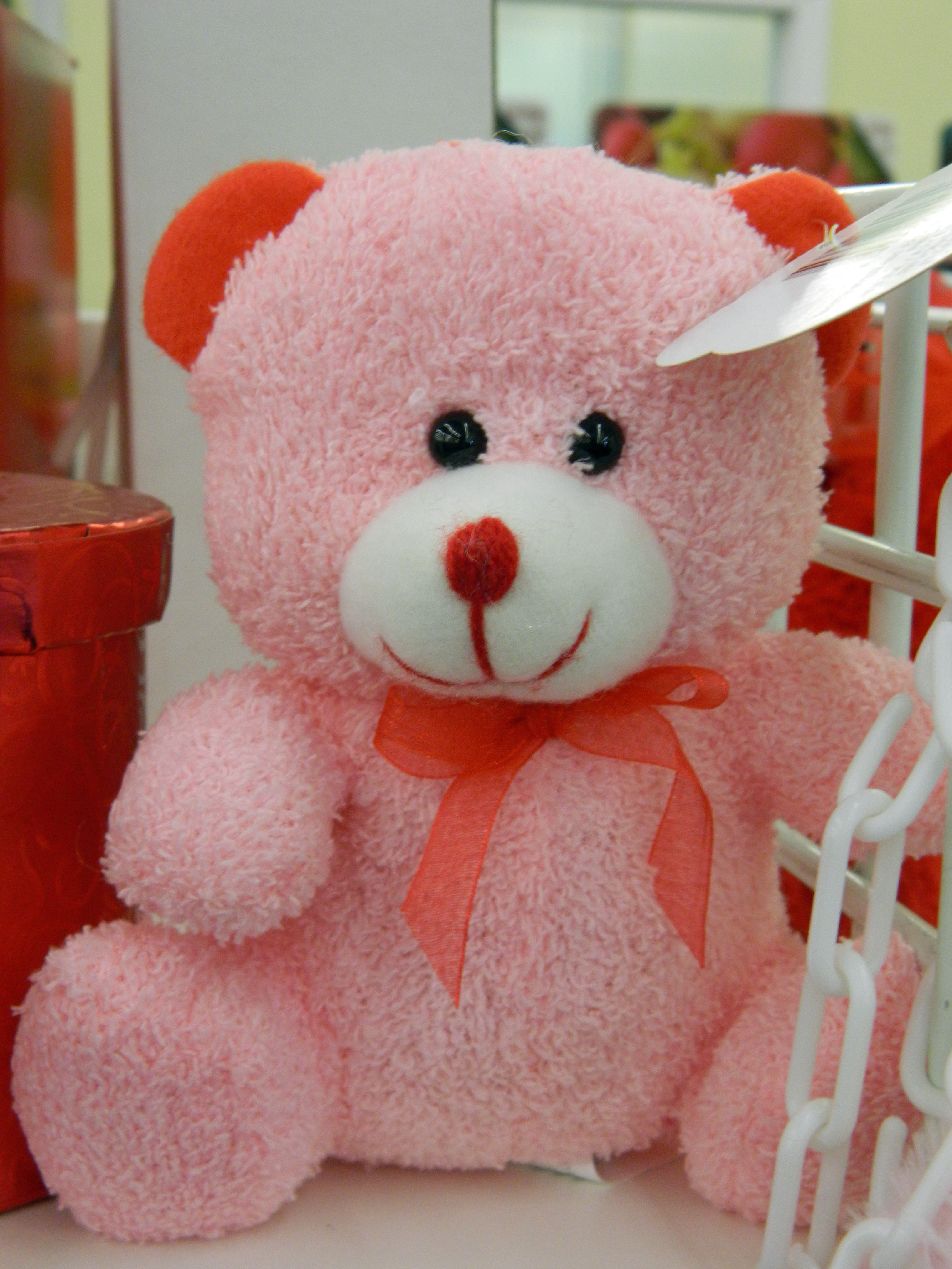 I looked around to see the other people in line with me. There were young men buying helium balloons shaped like monkeys holding a banana that have the romantic slogan printed on them “You appeal to me”. There were seniors buying a single chocolate rose wrapped in pink foil. There were dads, holding hands of young children, that were getting a pink stuffed bear and also with inexpensive cards. I was touched as I know with the economy still tough, this may be all these men could afford. Still, the Dollar Store had a wide and economical selection, and it made me smile.
