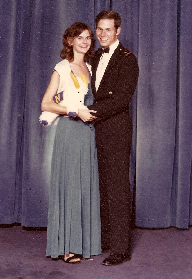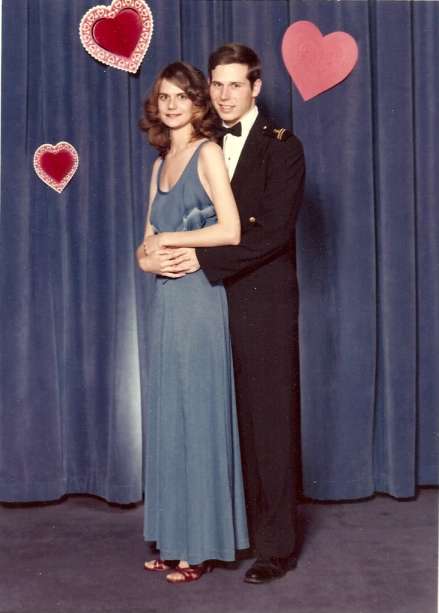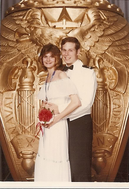 I met my husband while he was attending the United States Naval Academy. There were a lot of “formal” dances. I was a poor college student, so out of necessity I borrowed prom dresses from all my friends. It didn’t really matter what the dress looked like, so long as it was free to borrow. Cringe worthy 70’s fashions were the result, captured forever by the dance photographer.
