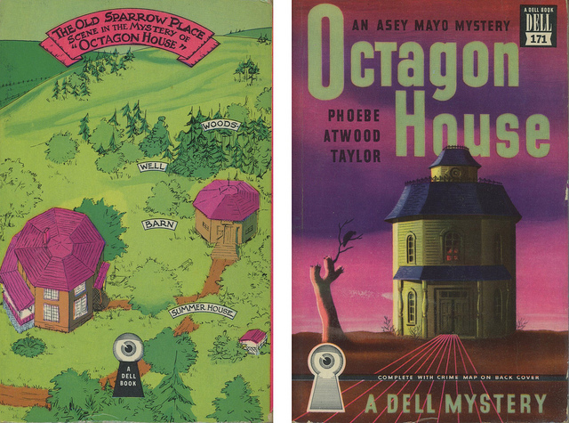 “Octagon House” is by Phoebe Atwood Taylor. She wrote under two names, but now her books are usually published under her real name. Her books featuring Asey Mayo as the detective usually take place on Cap Cod. Her books featuring Leonidas Witherall (who bears a striking resemblance to Shakespeare) take place in a Boston suburb.