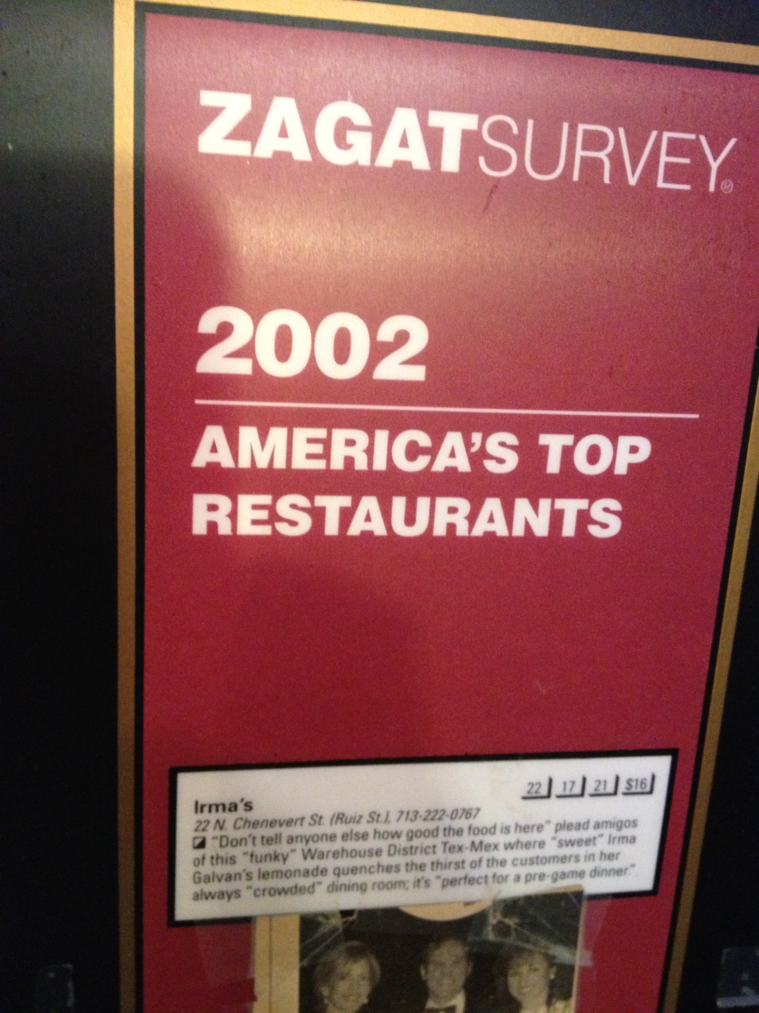 A few weeks ago, I was treated to my first lunch at Irma’s in downtown Houston. There is a story here, more than just the excellent food and warm atmosphere. First let me tell you about the place, and then let me tell you about Irma.