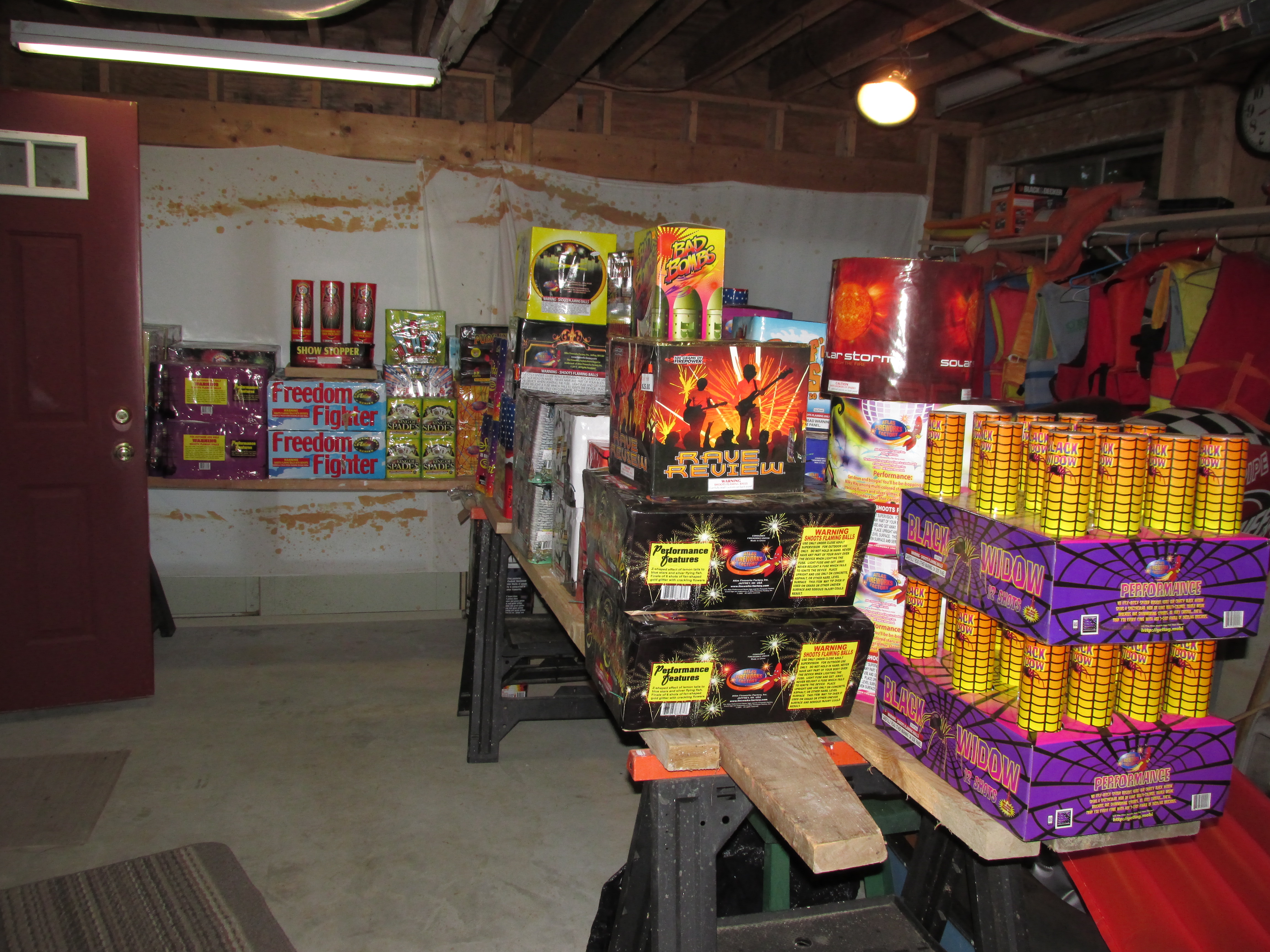 Just a few fireworks in the downstairs. Yes one year someone walked in while smoking a cigarette. Yes I ran. I’m pretty darn fast when motivated.