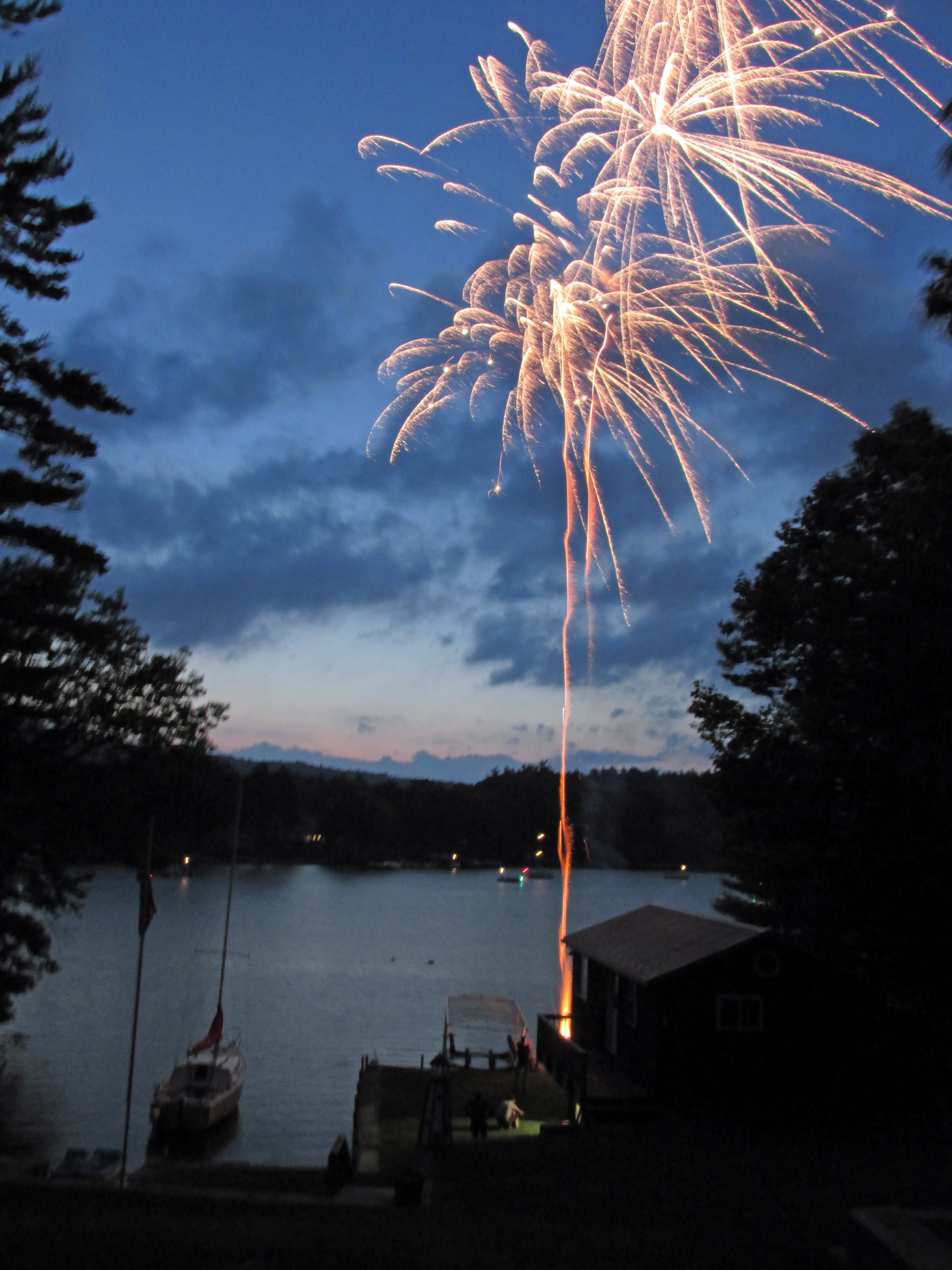 My neighbor on Lake Franklin Pierce in Antrim NH likes to put on a backyard fireworks show for the entire lake. We aren’t talking sparklers. This is New Hampshire where terrorists are known to shop for bomb parts, and you can buy just about anything. Many large fireworks manufacturers are located in the state.