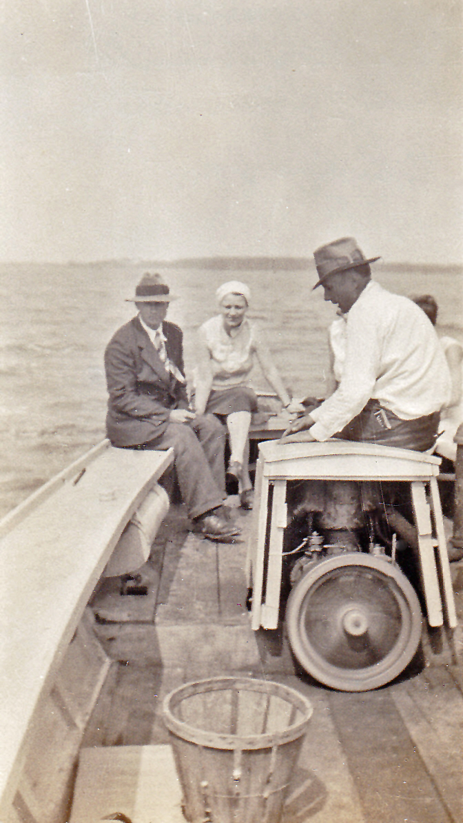 , These are relatives of mine on the Chesapeake Bay. I rather gather this is casual clothing, though the men rather look like they are going to the office. The apple basket is just like the ones I grew up with, you caught the wonderful Maryland Blue crab and put them live into the basket (there is a lid that fits under the handles). Later you had a great dinner.