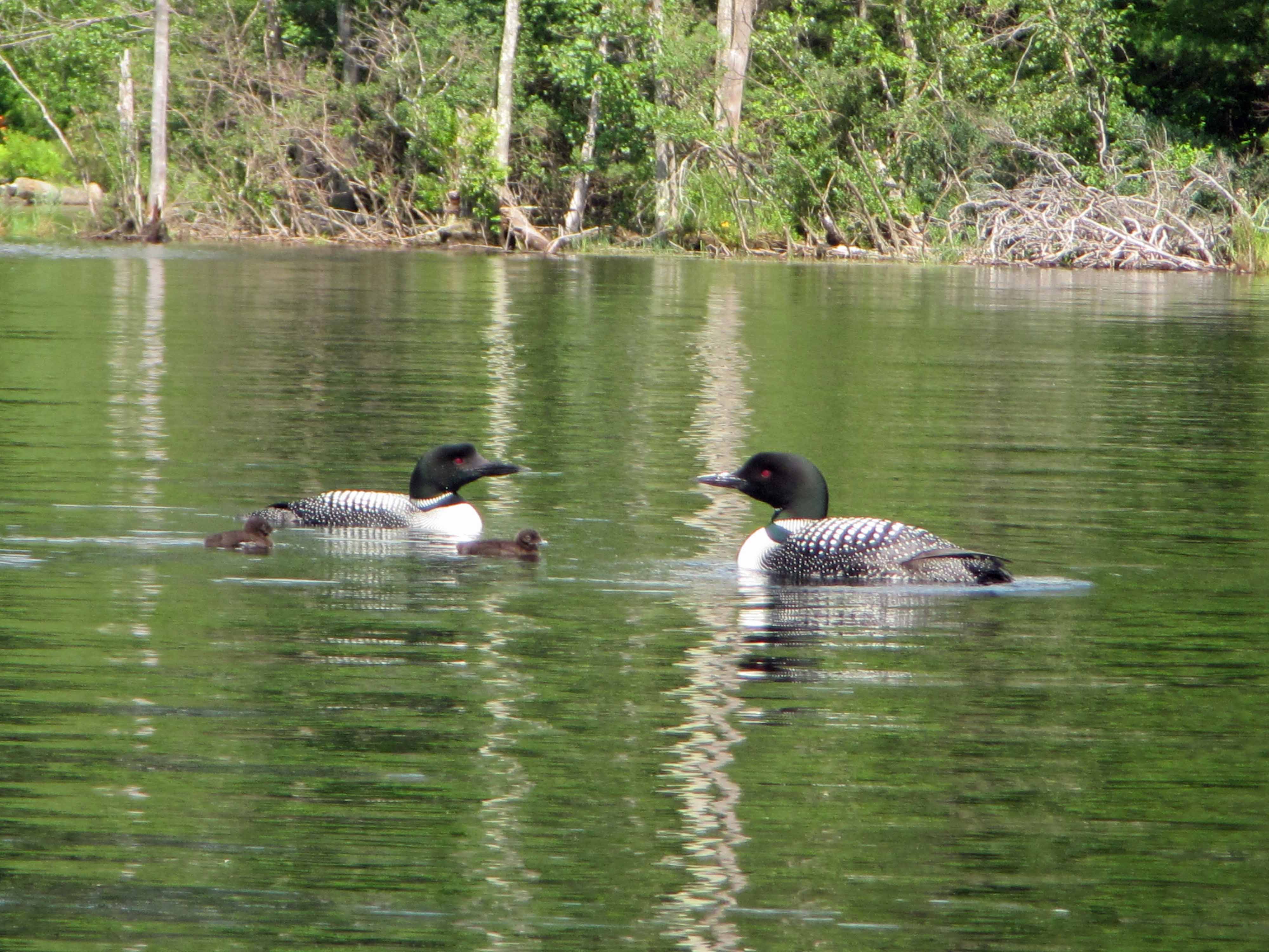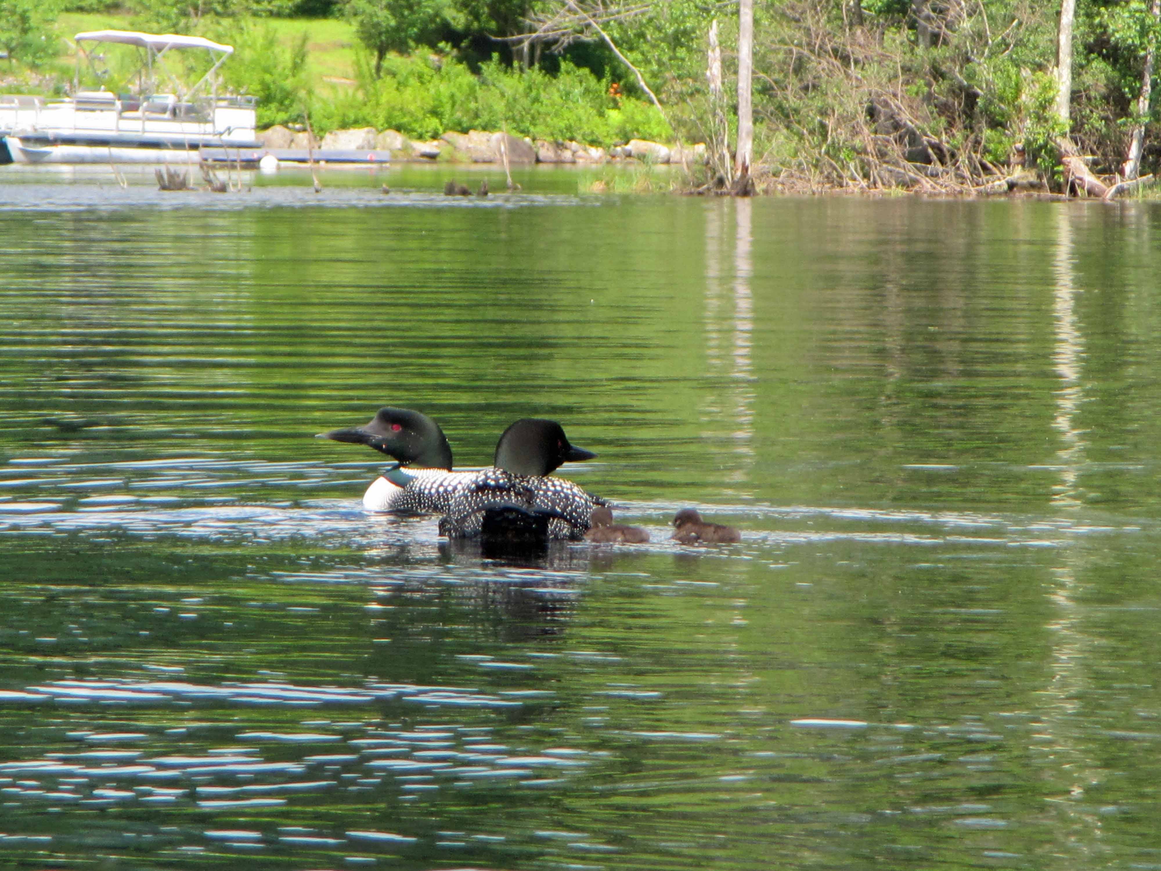 The loons have had their chicks on Lake Franklin Pierce, and are paddling around with their fuzzy babies.