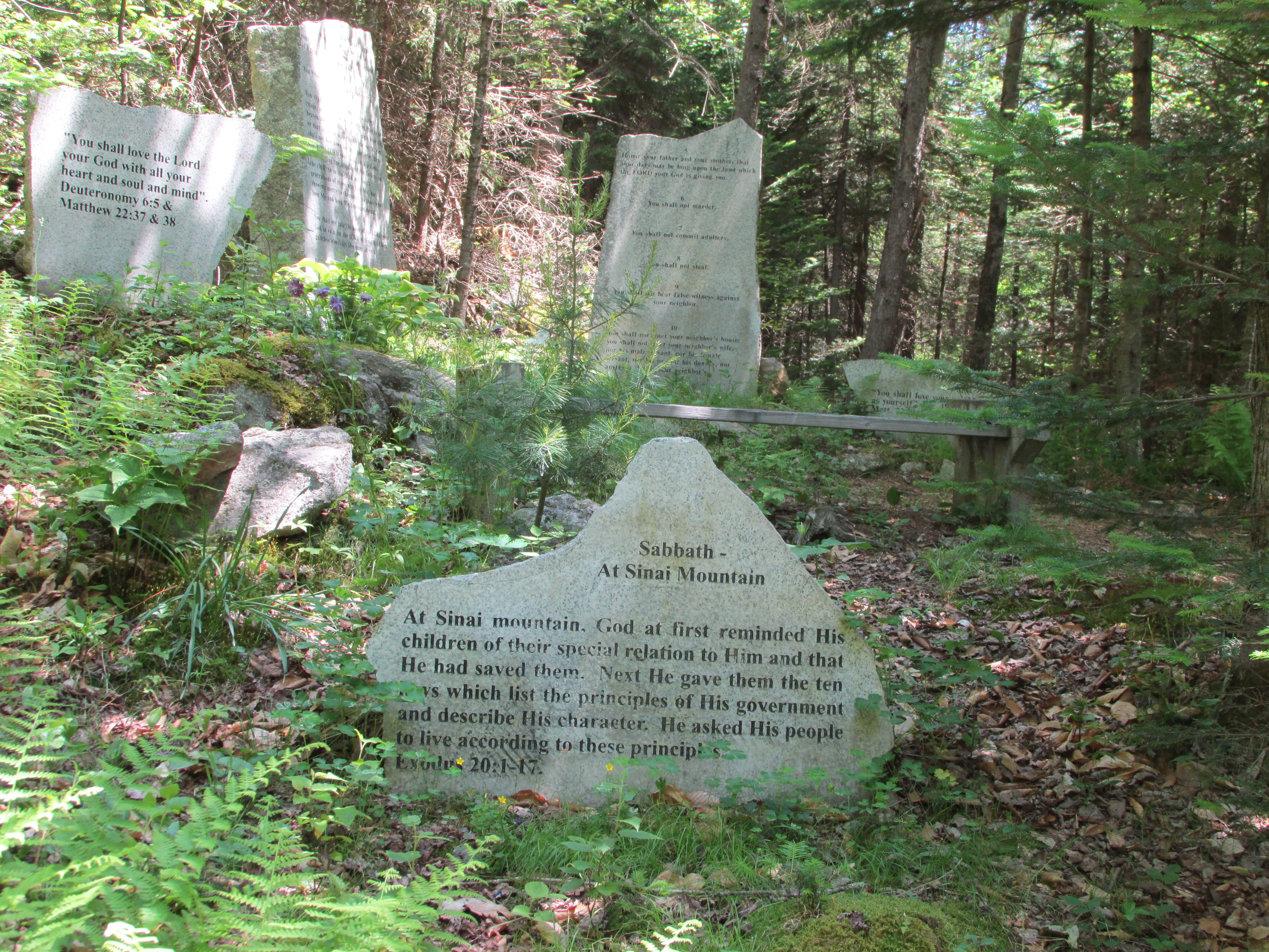 We arrived to find some volunteers clearing up the area and cleaning up the beautiful nature/meditation trail. The trail is about a mile long through the woods with benches to rest on while you read scripture or a bit of the history of the church. It was a cool trail to follow on a hot day.