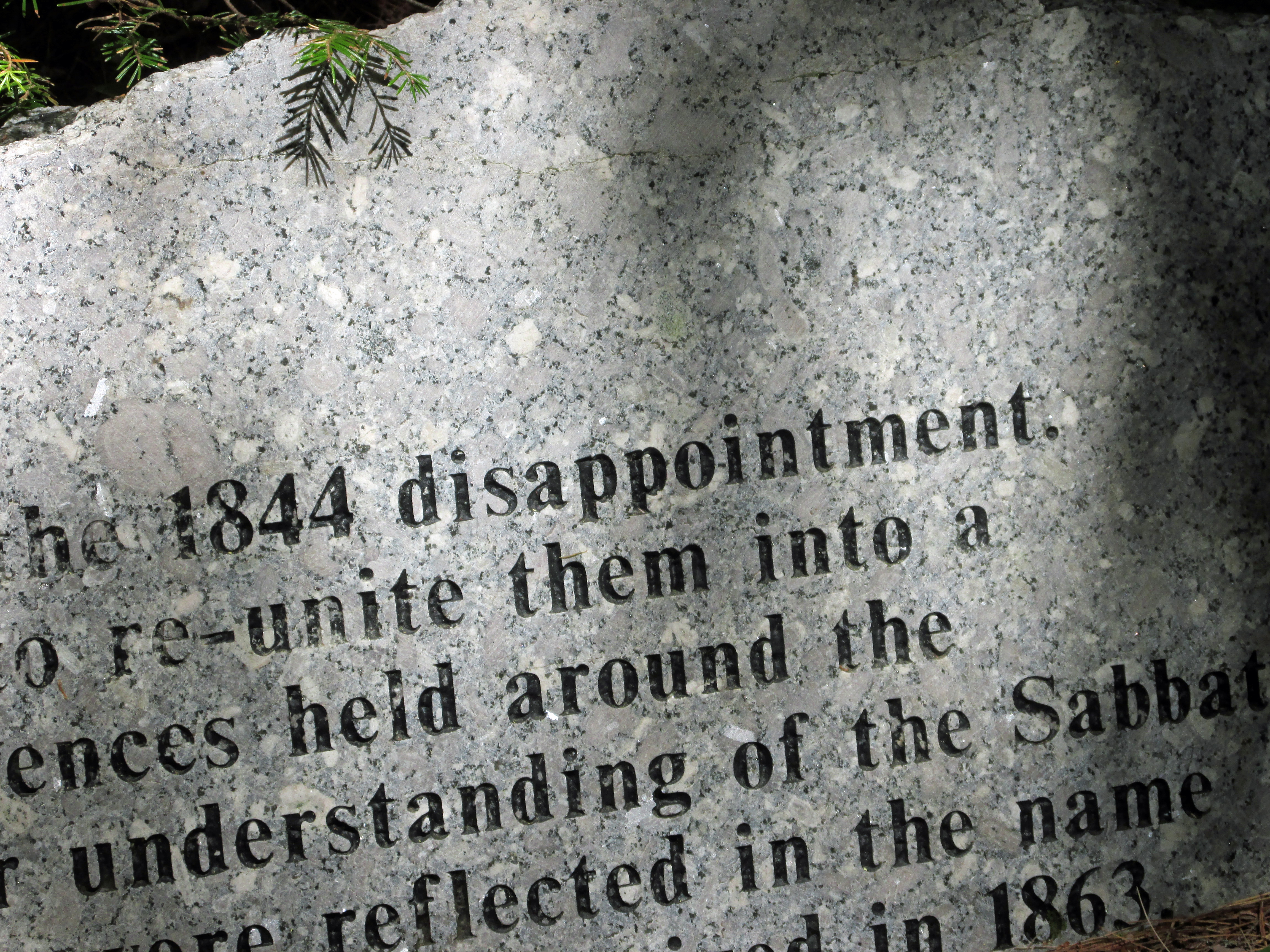 Ellie, from a Jewish family, got a kick out of all the stones that clarified for the reader why the Sabbath is Saturday, not Sunday. I joked “Well that’s a novel idea for you Ellie!” We were also interested that the end time predicted in 1844, that did not result in the end of the world, was referred to as “the disappointment”. I was rather pleased, than disappointed, that the world did not end so that Ellie and I could enjoy such a beautiful day together.