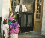 daytime trick or treating. Evelyn is a mermaid with a warm sweatshirt top. Rita was I think a ghost fox? As you can see a coat was also sometimes needed.