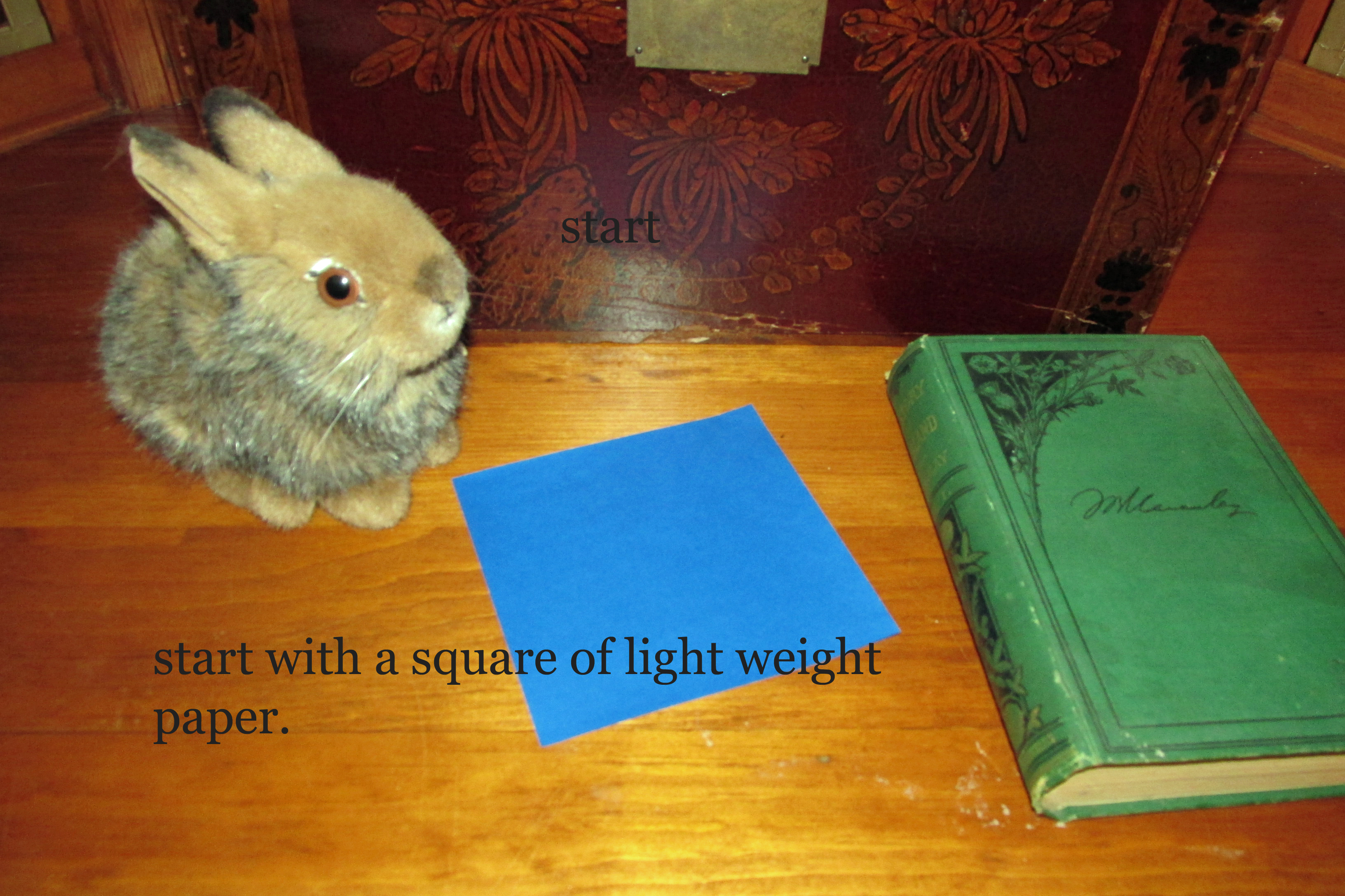 Start with a square of paper, anything lightweight. Even wrapping paper works well when cut to a square. Any size works.