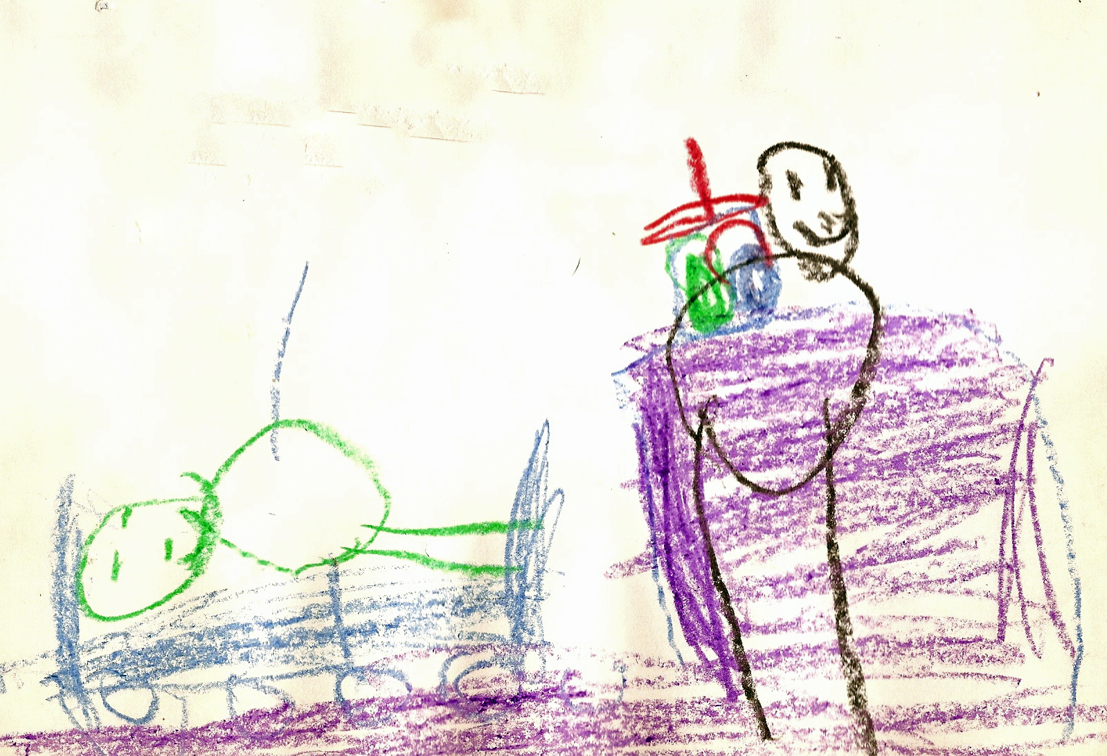 My daughter remained very upbeat right up until the surgery. She then presented me with 2 drawings to hang up in my hospital room to “make it pretty”.
