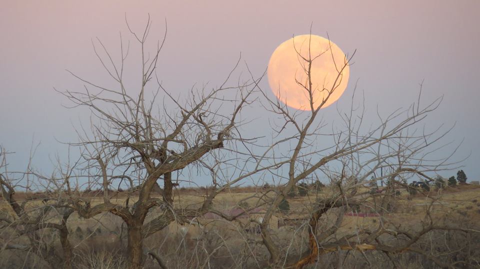 “So, I’m on my way home from Pueblo, on I25, and a cop pulls me over. As I sat there I saw the moon rise over the horizon so I get out my camera and start snapping. The cop comes back and says, “Whatcha doin?” and I showed him some of my pics. I said, “We are but specks in the great cosmic storm that is our universe.” He looked down and started tearing up. “Damn,” he said, “I’m going to write myself a ticket for even disturbing you.” Then he went back to his car and headed back into traffic.”