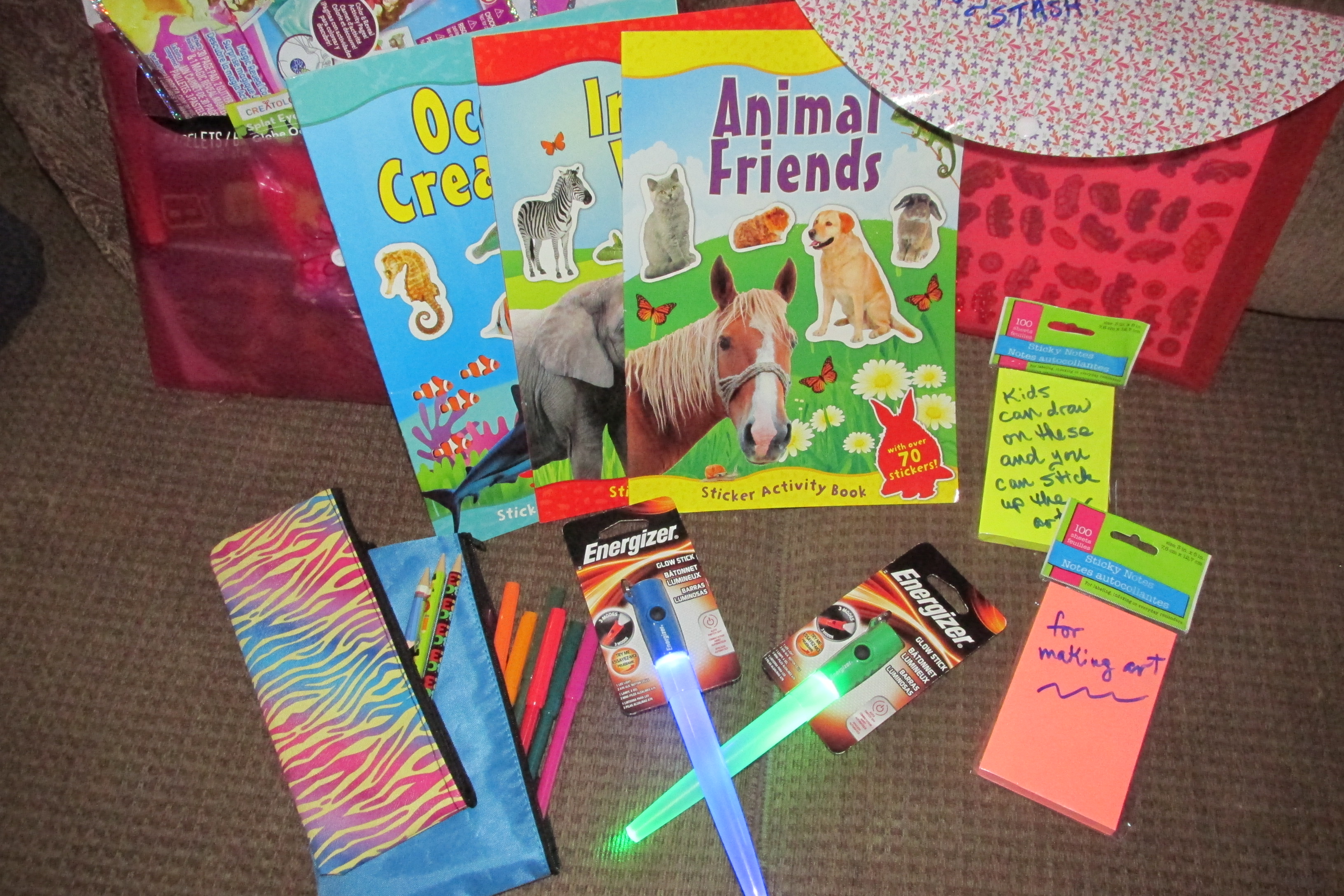 I know mothers that say “I let the children take a backpack of toys”. That’s fine, but nothing is more exciting than NEW TOYS. Even if those toys are from the dollar store.
