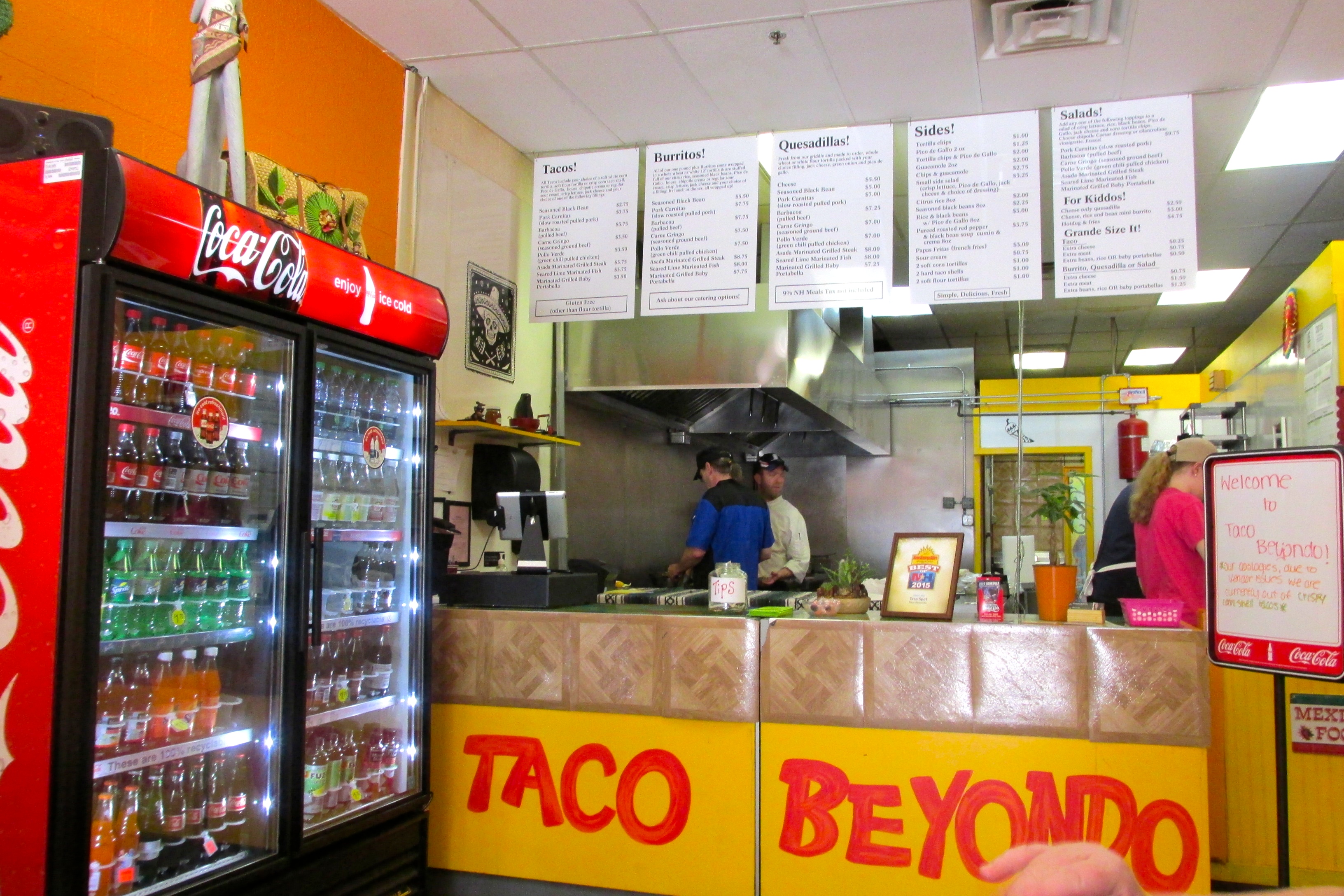 While the state of New Hampshire might not have a clearer vision of what real Mexican food is like, at least those of us close to Hillsborough can enjoy a much more authentic version than fast food Mexican.  Fingers are crossed for this shop to soon be able to afford a real sign, and for it to have the success the owners deserve.